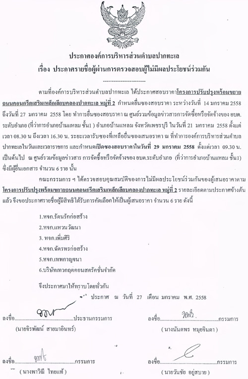 รายชื่อผู้ไม่มีผลประโยชน์ร่วมกันโครงการก่อสร้างถนนคอนกรีตม.2