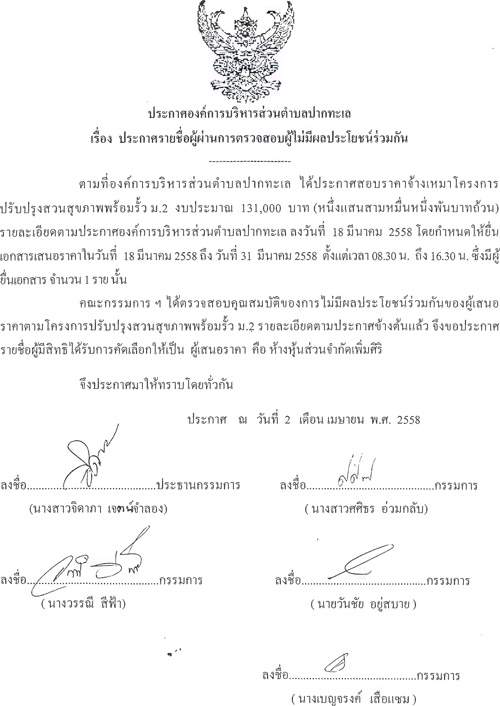 รายชื่อผู้ไม่มีผลประโยชน์ร่วมกันโครงการปรับปรุงสวนสุขภาพ ม.2